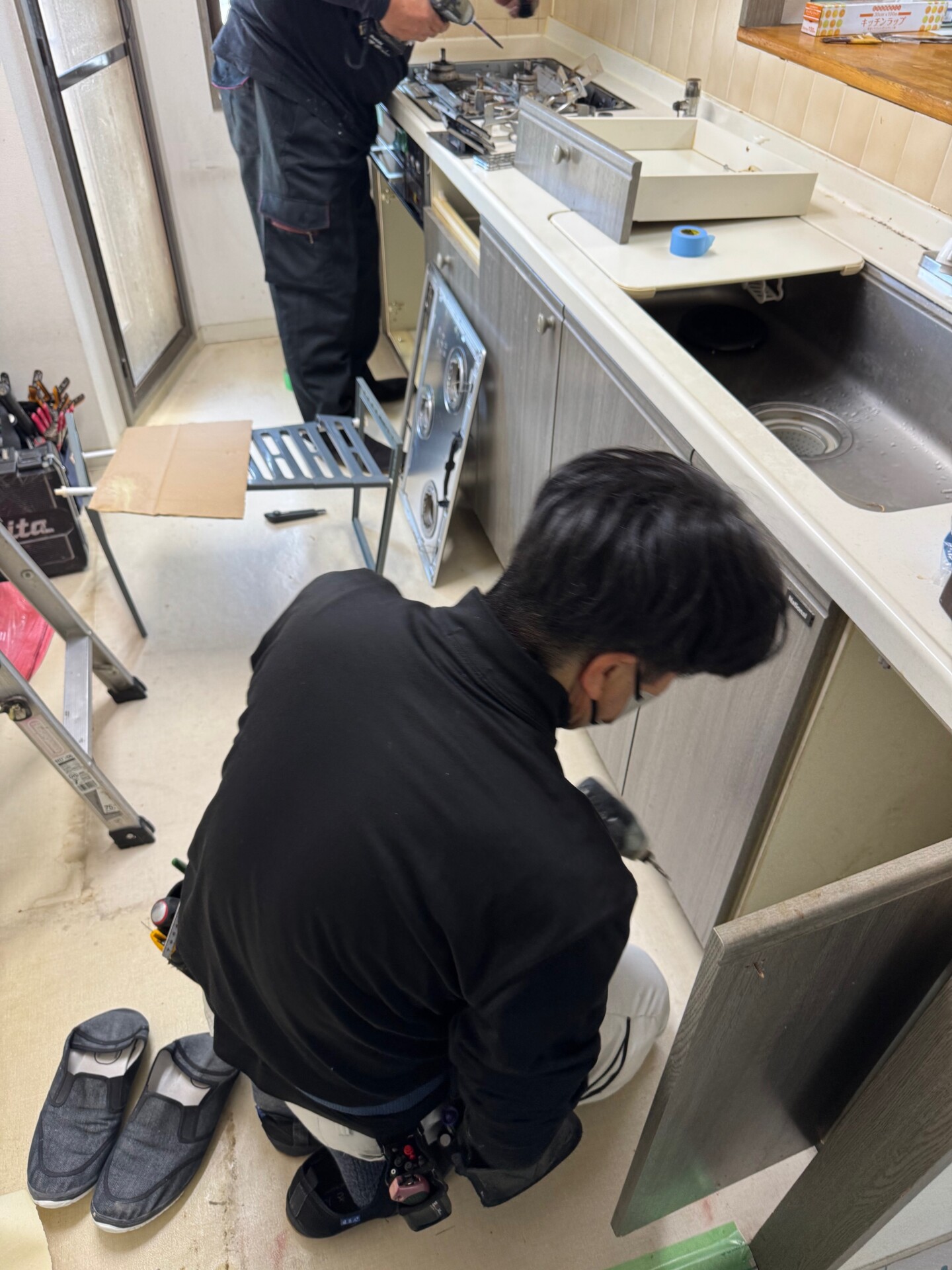 2026.04.16 マンションキッチンリフォーム工事 横須賀市野比町でマンションのキッチンリフォーム工事を行わせて頂いております。 本日は1日目、キッチンを解体し、電気水道配管工事や壁キッチンパネルなどを行う予定です。