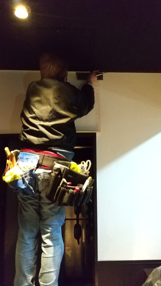 本日は壁のクロス貼りを行っており、2日間の店舗内装工事が完了となります。