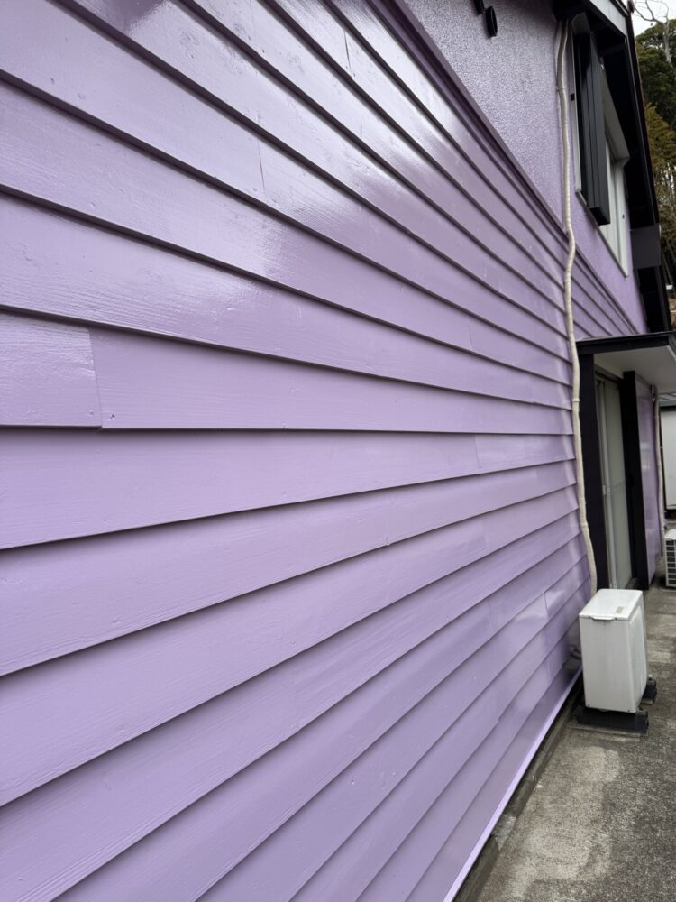 木製の鎧張部の写真です。木の節がたくさんあり、なんとかしたいとこの事でした。サイディングを上から貼るのも考えたそうですが、節を埋めてから塗装を提案。