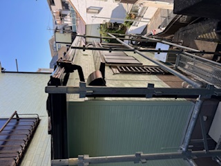 本日より塗装職人が現場に入ります。まずはケレンを行っております。