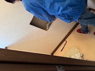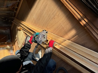 本日は和室リフォーム工事を行なっています。 畳を撤去し、下地を追加 断熱材を入れてからフローリングを貼ります。