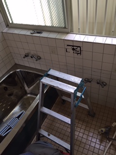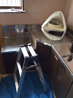 本日よりキッチンリフォーム工事着工です。 まずはキッチンを解体しています。
