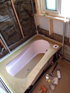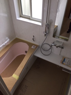 ユニットバス組み立て工事完成です。 水道、電気結び工事を行います。
