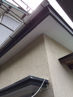 本日は軒天ケイカル板貼り工事を行っています。
