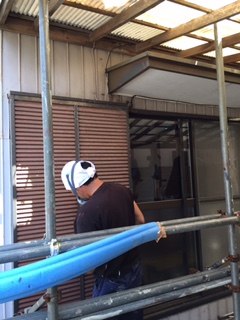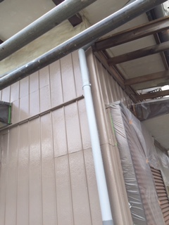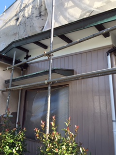 外壁塗装工事 本日はケレン下地処理を行っています。