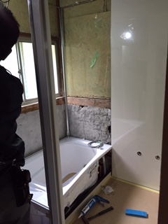 ユニットバス組み立て工事を行っています。 TOTOのサザナを設置します。