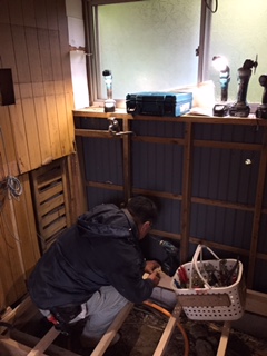 キッチンリフォーム工事、 床を解体しています。