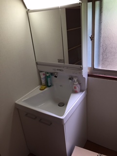 洗面台取り付け工事完成です。TOTOのサクアを設置しました。