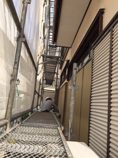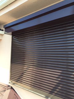 外壁塗装完了後、シャッターなど細かい塗装を行っています。