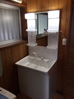 洗面台取り付け工事完成です。 TOTOのVシリーズを設置しました。