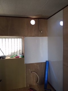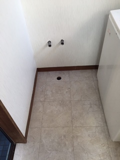 洗面所クロス、CF貼り完成です。 これから洗面台を設置します。