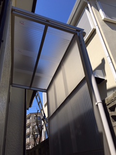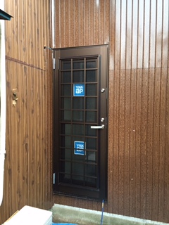 勝手口ドア設置、外壁リブトタン貼り完成です。通風ドアなので夏役立ちます。