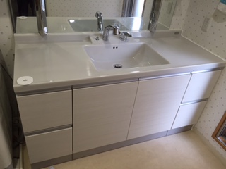 洗面台交換工事を行いました。 TOTOのシステムJを設置しました。
