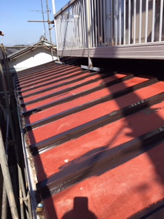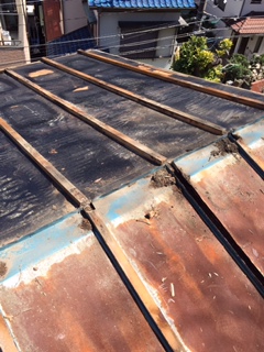 屋根瓦棒葺き替工事を行っています。