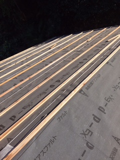 本日は下屋根波トタン貼り替工事を行っています。まずは下地工事です。
