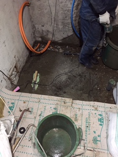 土間コンクリート打ち工事を行っています。