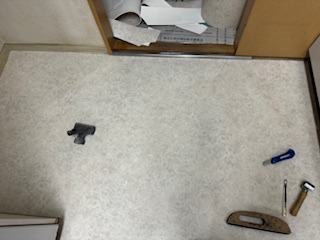 2024.06.21 横須賀市 本日はマンション床クッションフロア貼り替えを行なっています。クッション性の高い3ミリ厚の商品を使用しています 住まいのリフォーム ウイル 米山 直輝 TEL0120-44-2719