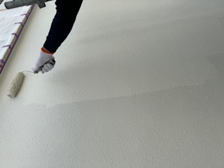 本日はクロス貼りを行っております。