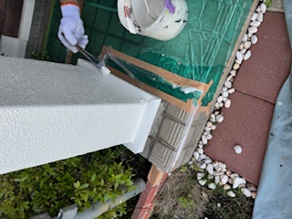 外壁塗装工事 本日は水切りなど細部の塗装を行なっています。 住まいのリフォーム ウイル 米山 直輝 TEL0120-44-2719