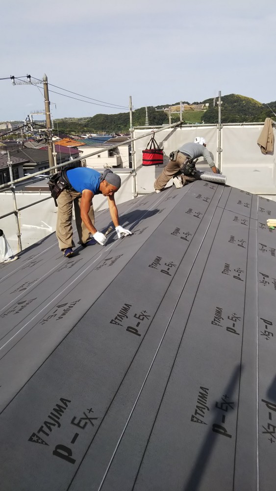 夕方にはルーフィング張りまで行い、雨が降っても問題無い状態とし、本日終了です。
