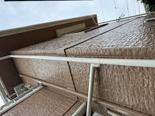 屋根外壁塗装工事 本日は外壁上塗りを行なっています。