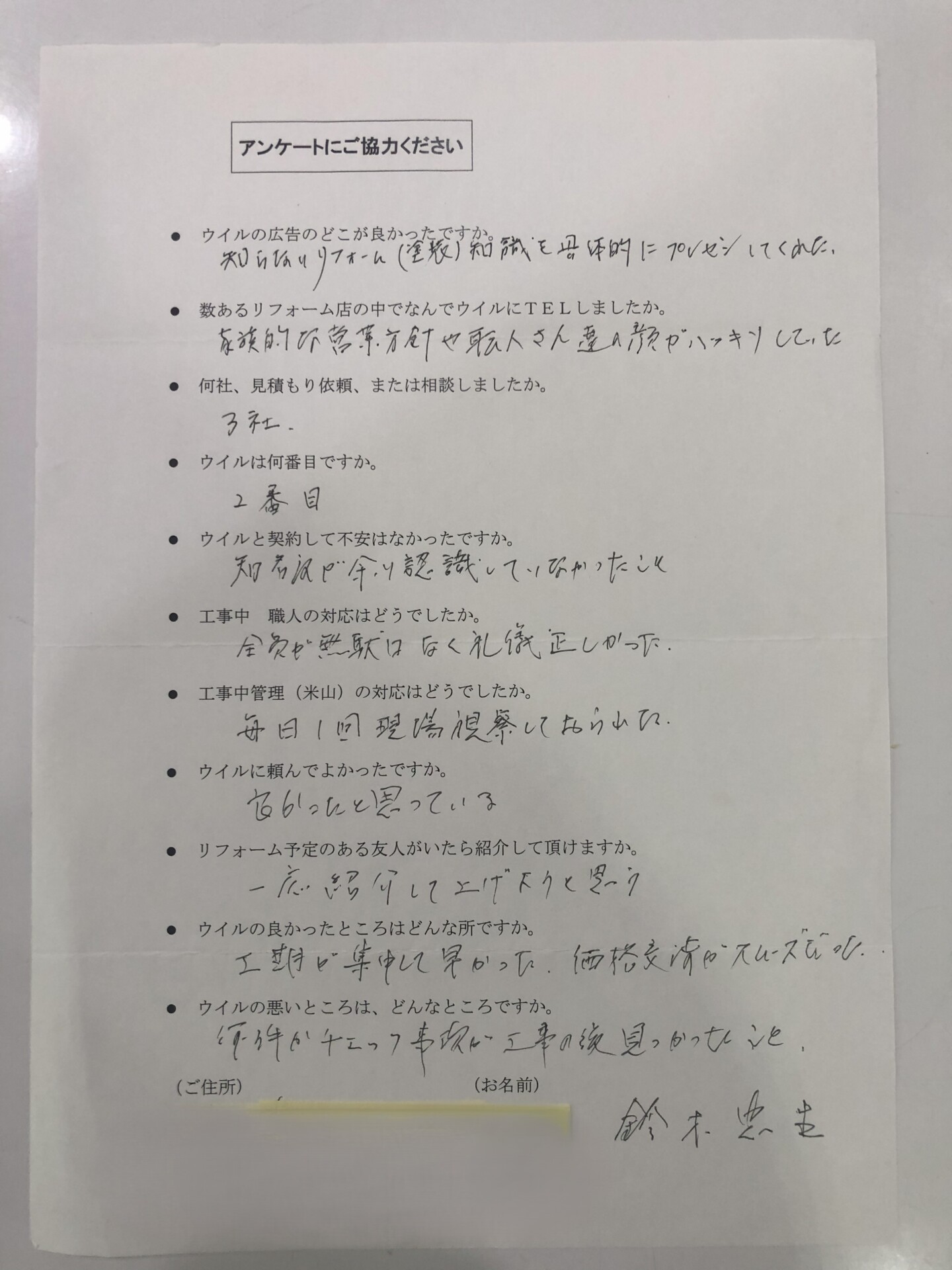 Q. 数あるリフォーム店の中でなぜウイルにしましたか。