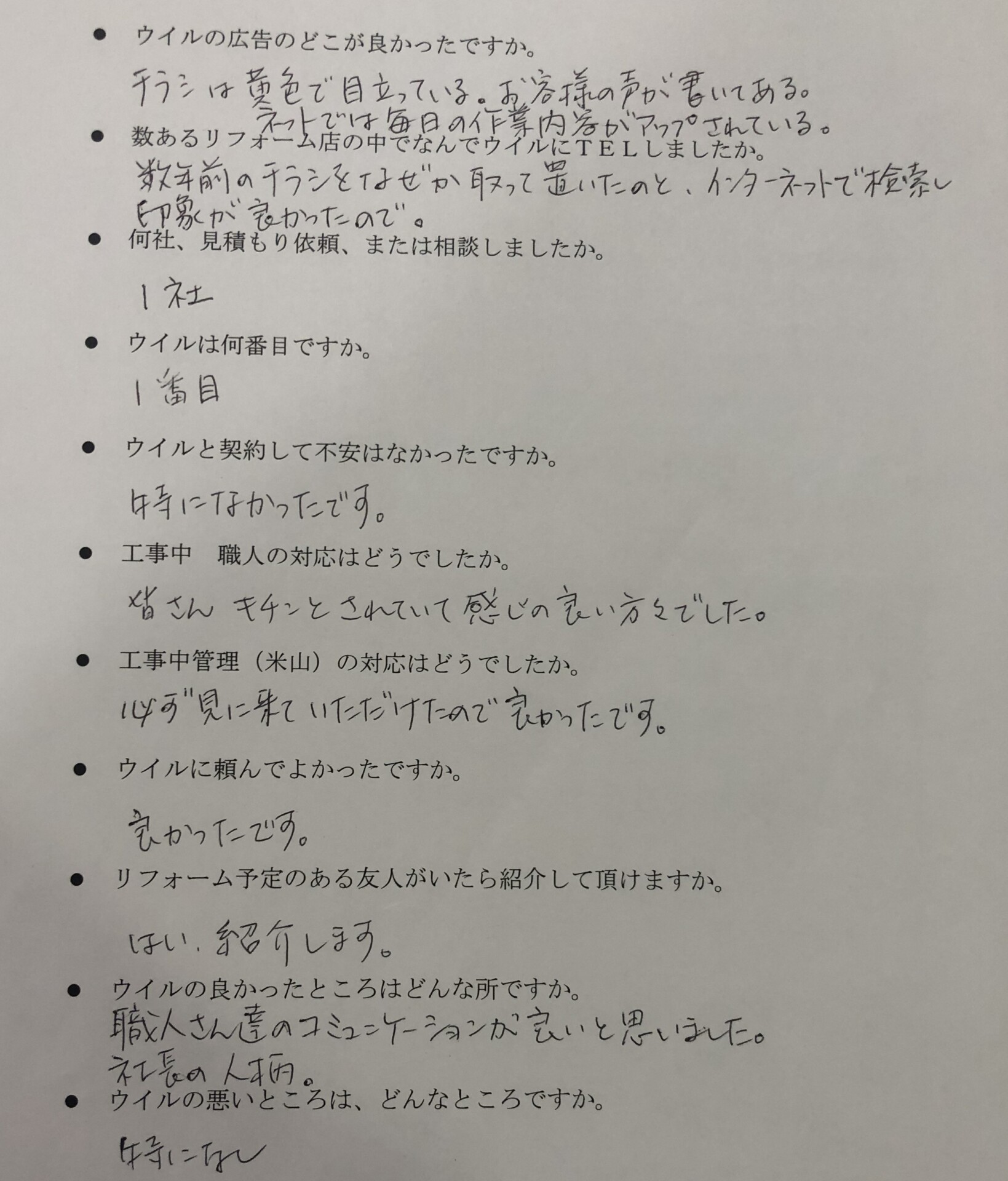Q. 数あるリフォーム店の中でなぜウイルにしましたか。