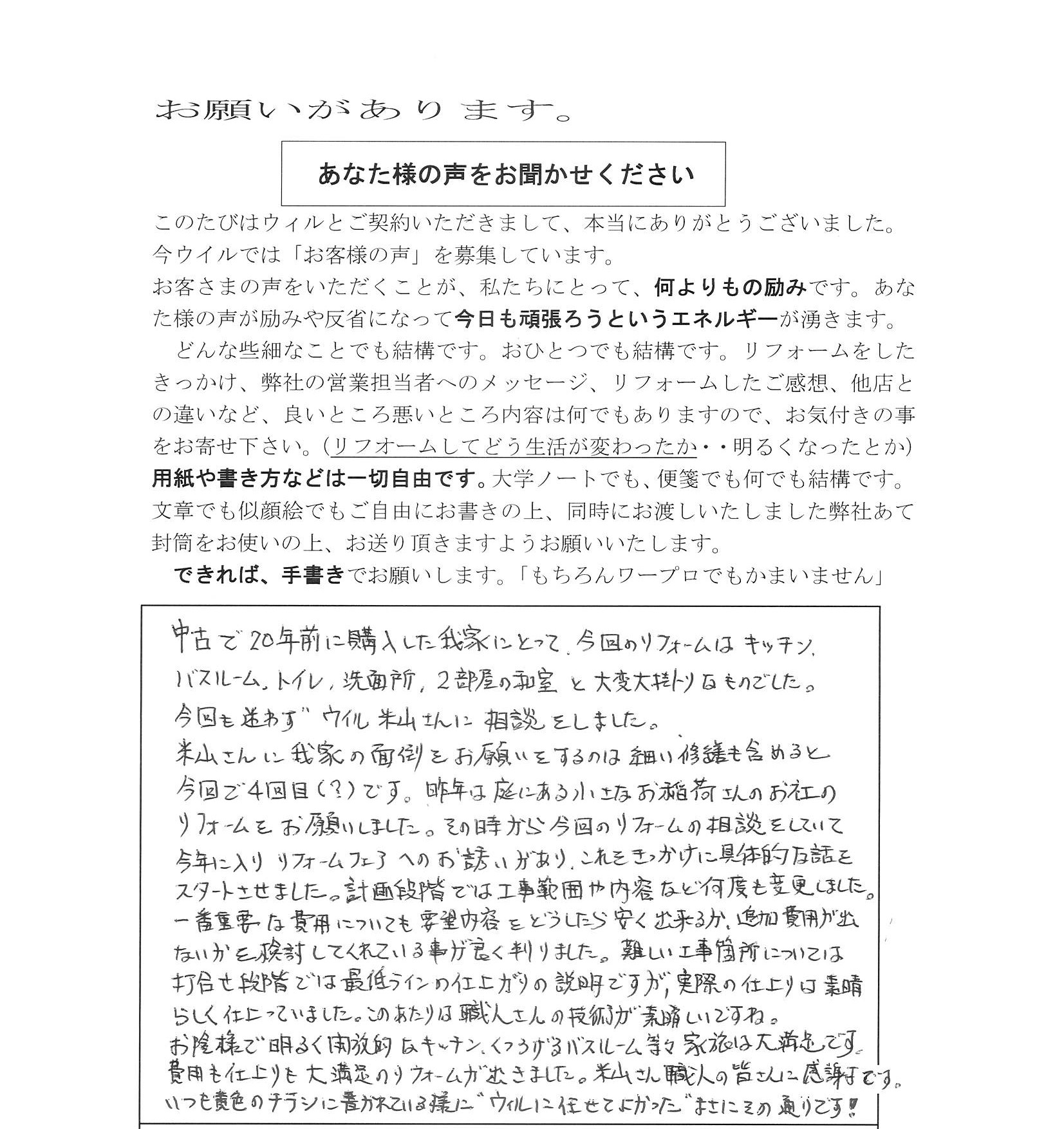 費用も仕上がりも大満足のリフォームが出来ました。米山さん職人さんに感謝です。