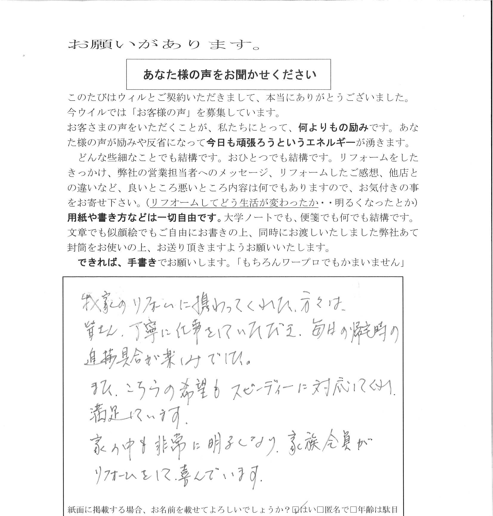 家の中も非常に明るくなり、家族全員がリフォームをして喜んでいます。