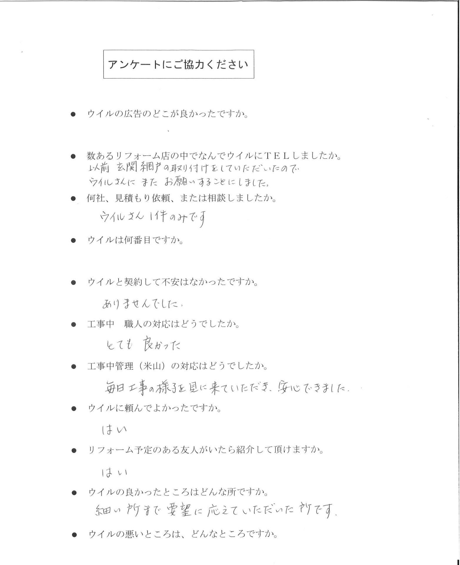 Q. 数あるリフォーム店の中でなぜウイルにTELしましたか。