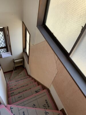 | 工事内容 | 下地工事→クロス貼り替え→手摺設置 |